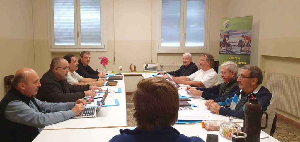 I giorni centrali della settimana ci hanno visti impegnati all’ascolto reciproco, con la presentazione delle diverse relazioni, sia delle delegazioni (includendo una ricca lettera arrivata dal Mozambico), sia delle varie realtà ed equipes presenti nella Famiglia: le Sorelle nella Diaconia, gli Amici, l’Equipe centrale, l’Equipe di comunicazione, l’Equipe missionaria, l’Equipe economica. Dalla consapevolezza delle nostre situazioni concrete, segnate da fragilità e fatiche, ma anche da tanto entusiasmo per il regno di Dio, con una attenzione particolare alla dimensione vocazionale delle nostre presenze e del nostro lavoro, abbiamo poi approfondito il discernimento per aiutare p. Roly nelle decisioni da prendere in vista del nuovo tratto di strada da percorrere insieme.