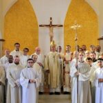 Sabato 12 ottobre vi si è riversata numerosa e qualificata rappresentanza dei cattolici del Sud e del Nord per l’ordinazione diaconale di Gaitano, “ragazzo” di 28 anni nato qui, in un villaggio “ex- internim” da genitori di Mirdita e di tradizione cattolica, battezzato e cresciuto nella nostra missione, formato nel seminario interdiocesano di Scutari, fortificato da esperienze di lavoro e di studio anche in Italia, ora “diacono” – si prevede che presto sarà presbitero – primo e finora unico ministro ordinato, albanese, incardinato nella Amministrazione Apostolica dell’Albania Meridionale dove operano dal 1991/92 missionari, suore e preti, italiani e di altri paesi, dove siamo stati anche noi della Pia Società San Gaetano dal 1994 al 2019, provvidenzialmente sostituiti adesso dai religiosi di Don Bosco, dove continuano la loro presenza e servizio le Suore della Divina Volontà di Bassano del Grappa e le Piccole Ancelle del Sacro Cuore di Città di Castello.