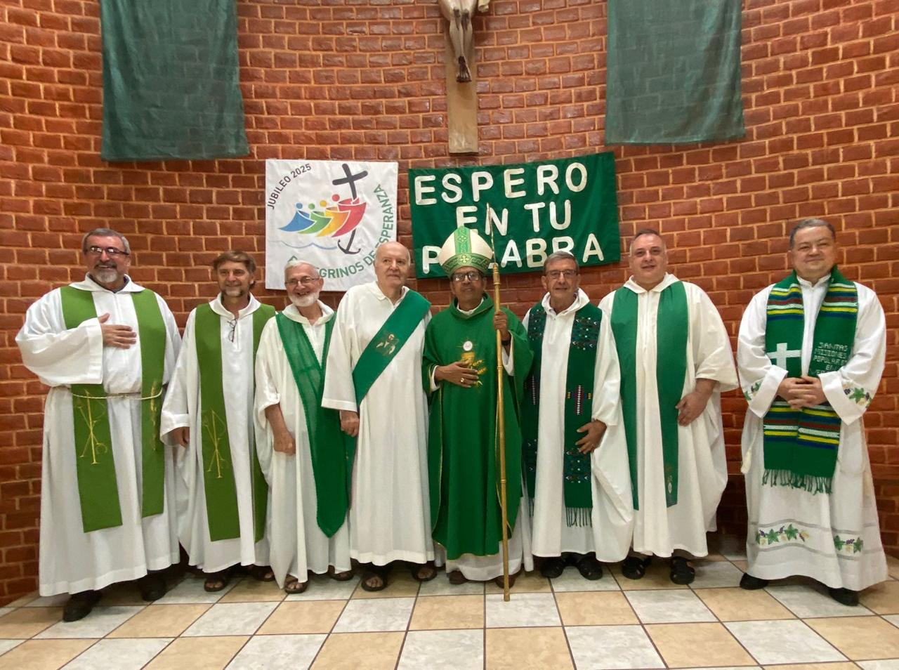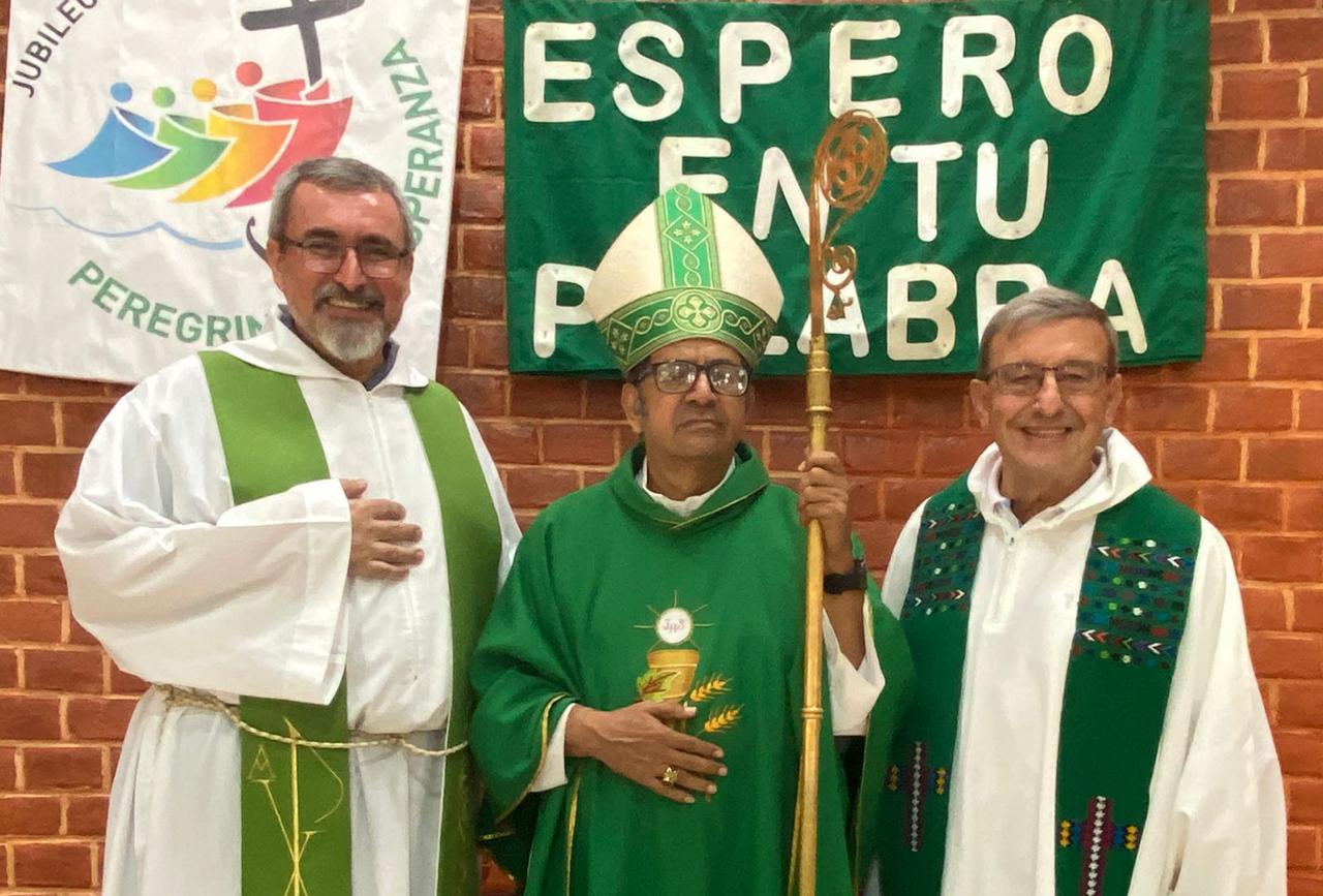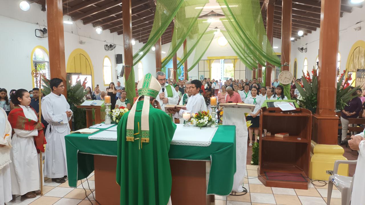 Domenica 16 abbiamo partecipato alla Santa Messa nella parrocchia di Santa Caterina d’Alessandria. Questa Messa è stata presieduta dal Vescovo, Monsignor Elias (una grazia speciale, visto che quel giorno festeggiava il suo compleanno). Arrivando in chiesa, ho percepito il senso di un popolo che celebra la propria fede e la gioia di essere una famiglia, mentre tutti si salutavano con entusiasmo e rispetto. A poco a poco si preparava ogni dettaglio della liturgia, con i suoi diversi servizi, e allo stesso tempo la chiesa si riempiva. All’inizio della Messa, il Vescovo ha chiesto a padre Severino e a padre Jorge Darío di professare la fede (recitando il Credo), perché iniziavano il loro lavoro pastorale come nuova comunità religiosa, al posto di padre Piergiorgio e del diacono Albino.