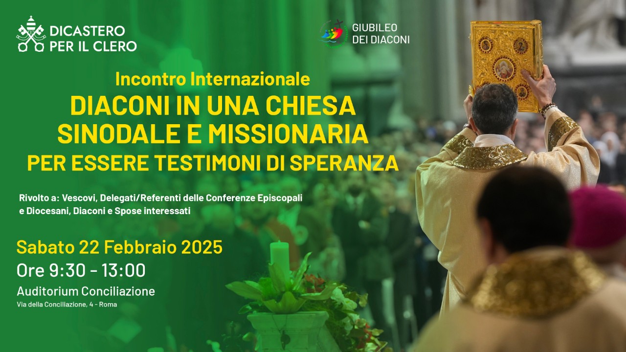 Con questo titolo nella mattinata del sabato 22 febbraio 2025 ore 9.30-13.00 si è realizzato a Roma nell’Auditorium in via della Conciliazione un incontro internazionale sul diaconato promosso dal Dicastero per il Clero della Santa Sede rivolto a Vescovi, Delegati/Referenti delle Conferenze Episcopali e Diocesane, Diaconi e Spose.