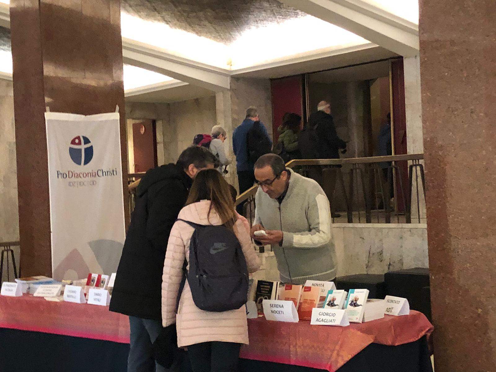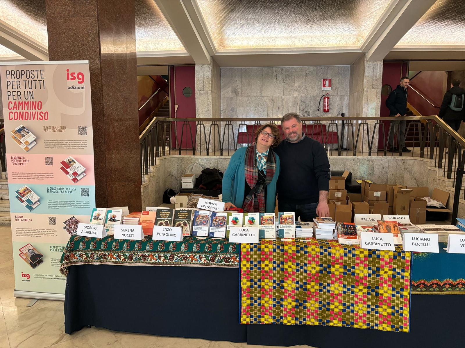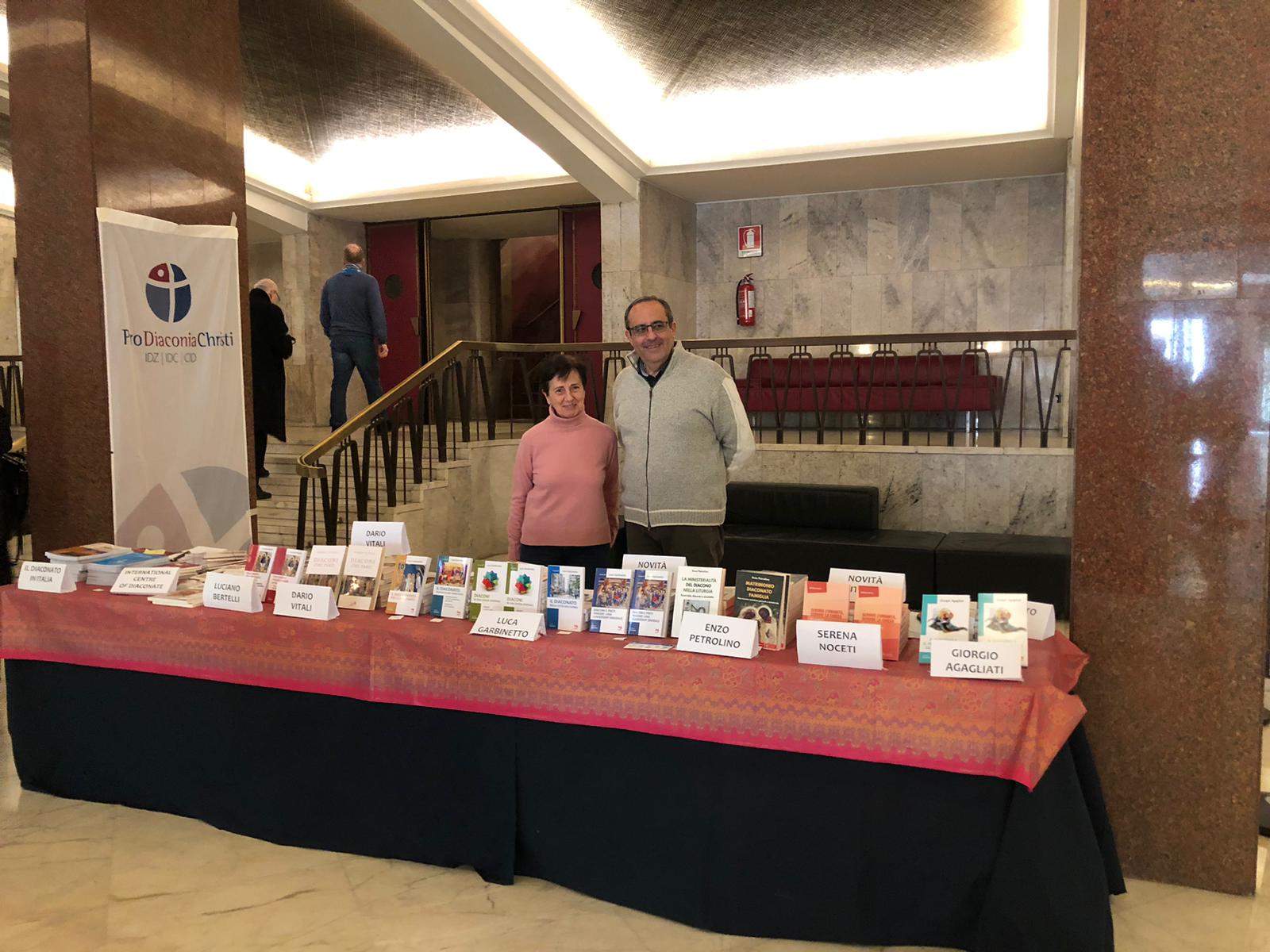 Per partecipare anch’io a questo incontro sono arrivato a Monterotondo il giorno prima viaggiando con una coppia diaconale di Vicenza. Un’altra coppia diaconale è venuta da Treviso. Abbiamo trovato la Famiglia di don Ottorino in grande fermento oltre che per organizzare l’ospitalità di chi veniva da fuori, anche e soprattutto per la diretta collaborazione dell’evento stesso. Da Vicenza avevamo portato i vari libri sul diaconato delle nostre Edizioni ISG per metterli in vendita all’entrata dell’immenso salone gestito da uno svariato numero di personale addetto all’accoglienza, alla sistemazione dei posti e alla consegna di una piccola radiolina per la traduzione nelle varie lingue. A poco a poco il salone si è riempito di circa 1500 persone.