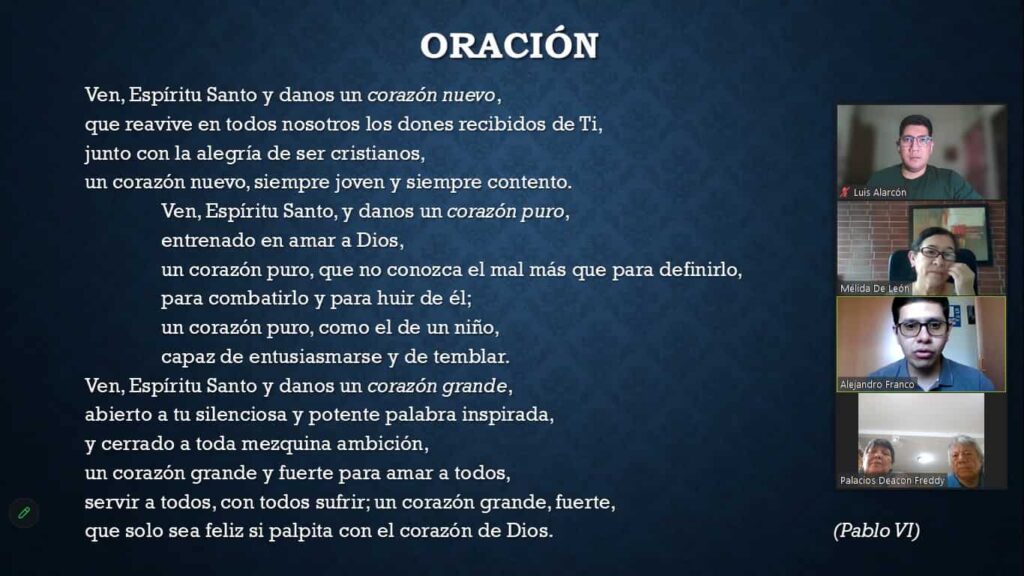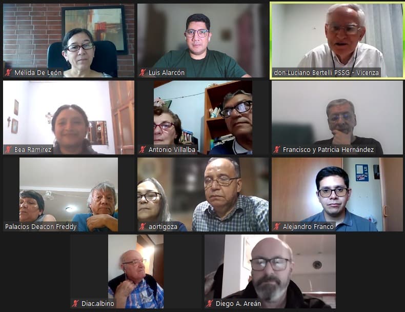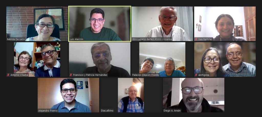 En este encuentro virtual, se contó con la presencia de cinco parejas diaconales de Argentina, Paraguay, El Salvador (de origen colombiano), Guatemala (que sirven en EUA y Guatemala); P. Luciano Bertelli y los integrantes del equipo de formación en diaconía.